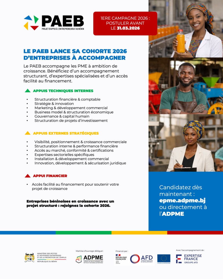 C’est pour cela que le Projet d’Appui à l’Entrepreneuriat au Bénin (PAEB) lance sa cohorte 2026.